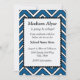 Celebrate your child's move to college with this blue, black, and white chevron pattern invitation.