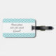 This beautiful luggage tag features a chevron stripe design of aqua blue and white on front and back with areas you can customise with your name and last name initial as well as phone number or full address.