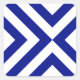 Alternating blue and white chevrons converge in this bold geometric pattern created from scratch.