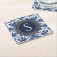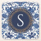 Blue and White Chinoiserie Floral Monogram Square Paper Coaster