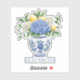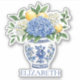 This cute vinyl sticker features a beautiful blue and white chinoiserie vase with blue and white hydrangea flowers and lemons. Personalise with your choice of name or special text. Fun for personalised gift bags and party favours.
