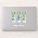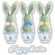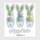 These Easter vinyl stickers feature cute bunny rabbit green topiaries with pink, blue and yellow bows in blue and white chinoiserie flowerpots. Personalize the holiday message with your choice of special text.