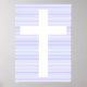 Blue and White Christian Cross Minimalist Line Art Religious Symbol of Christianity.