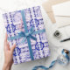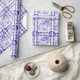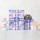 This blue and white rabbit design was originally hand painted on ceramic tile, so you can see the tile spaces. It works beautifully as a wrapping paper design. The monochrome design features a bunny in a snowy setting, bordered by more bunnies and snowflakes.