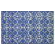 Elegant decorative fabric design featuring a seamless damask pattern in blue and white.