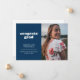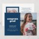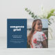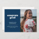 Announce your graduate's big achievement with this simple but stylish graduation announcement. It features the words "congrats grad" in a white retro style font on a dark blue background as well as spaces for a photo on both the front and back. The back of the announcement also has space for a personal note about the graduate, including future plans.
