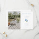 This beautiful oh so chic and minimal, white wedding 'Save The Date' card showcases a couple photo, a floral blue hydrangea design, elegant brush script text in dusty blue, event date and address, along with a contemporary set of fonts. Youthful and trendy, this horizontal card sets a joyful tone.