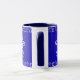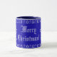 Blue and White Modern Christmas Tree and Gingerbread Man Pattern with custom text Merry Christmas in Elegant Script, you can change or delete the text, Winter Season Holiday Coffee Mug for kids of all ages