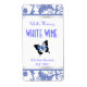 Elegant home made wine labels ready for you to personalise with your own information. Graphic artwork of a blue and black butterfly on a white background, with a blue and white damask design, on top and bottom edged with a white satin looking ribbon. Great for your home made wines. Customise if you want to change text colour or font style.