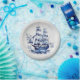 Blue and white Delft style sailing ship in the sea Paper Plate