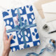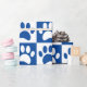 Blue And White Dog Paws In Squares Custom Wrapping Paper
