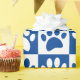 Cute blue and white dog paw prints in squares. Custom gift wrapping paper rolls for dog lovers and their dogs.