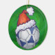 Blue and White Festive Soccer Ball on Green Ceramic Ornament