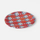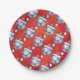 Blue and White Festive Soccer Ball Pattern on Red Paper Plate