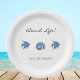Customise this Beach Life Paper Plate with your Family Name and add an Elegant Touch to your Beach House Party. The Blue Fish and Shells against a Crisp, White background, will give your Beach Party or Beach Housewarming Party a Chic Look.