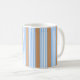 Blue and white five stripes pattern with tan coffee mug