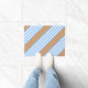Blue and white five stripes pattern with tan doormat