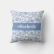 Blue and White Floral Botanical Custom Name Modern Cushion
