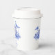 These bridal shower tea party paper cups have a monochromatic design featuring a blue and white tea set surrounded flowers. You can personalise with a name and date.