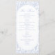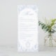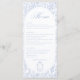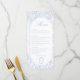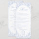 This soft Delft blue floral wedding menu is designed in a refined blend of chinoiserie and French toile de Jouy style. Delicate botanical illustrations frame an elegant oval arch layout, creating a timeless and romantic presentation. The menu includes space for three courses on front and a complete bar menu on the back, making it both beautiful and practical for your special day.