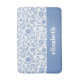 Blue and White Floral Custom Name Botanical Modern Bath Mat