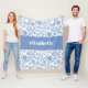 Blue and White Floral Custom Name Botanical Modern Fleece Blanket