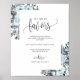Unique "In lieu of Favours" sign with gorgeous watercolor floral bouquets on the sides. Flowers and foliage in dusty blue, navy blue, white, grey and sage tones. Elegant graceful modern hand written calligraphy details. 8" x 10" is simply an example, choose from a variety of smaller and bigger sizes. Easy to frame or spray glue/staple to inexpensive MDF or foam board. Part of our "Rustic Blue Mountains" wedding and events collection.