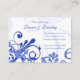 The text on these royal blue and white abstract floral wedding reception cards is fully customisable. To change it use the personalise option. For more extensive changes, including changes to the font, font colour, font size, or text placement, use the customise option. Note, these are ordered in batches of minimum 100. If smaller numbers are required, the reply card in this line, with changes to the text, could also be made into a reception card.