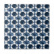 This design features white and blue flowers on a blue background.