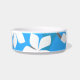 Flower pattern. Floral design in cool blue, white and light grey. Small white flowers, with light grey leaves and a bright cool blue background.