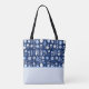 This blue and white flowers in vases botanical pattern is perfect for an all-over print tote bag. The bottom third (aprox.) is a coordinating solid with a thin stripe. Tote bags are a fun seasonal aesthetic accessory. Great stocking stuffer, too! AI assisted graphic purchased with commercial use. Artwork: DreamCafeArt