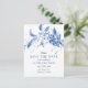 This charming Save the Date postcard is adorned with a stunning blue and white floral design, creating a graceful and ethereal atmosphere - perfect for a memorable event.
