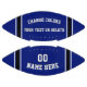 Blue and White Football Ball Personalised with Your TEXT and Change COLORS. FREE Custom Designing Service by Linda: 239-949-9090 Choose Mini or Full Size Personalised American Football is shown. Designer Linda: 239-949-9090 to CHANGE the White Text and Blue Football Background to Any Colour Combination. See how to SAVE your customisation below * * * *