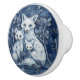 Blue and White Fox Family Wood Animals Ceramic Knob