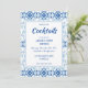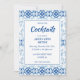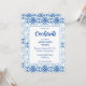 Blue and White Chinoiserie Pattern with Geometric and Botanical Flowers and Leaves.