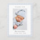 Simple grey blue and white Gingham border baby boy Thank you Birth announcement postcard with photo and birth stats.