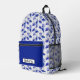 Head back to school or pack for a vacation with a personalised blue and white gingko leaf backpack. Click the custom button to change the name.