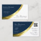 Blue and White Gold Decor with QR-Code Stylish Business Card