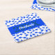Blue and White Graduation Caps Thrown in the Air Square Paper Coaster