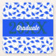 Blue and white graduation caps thrown in the air for both him and her. Nice graduation party decoration coaster for a graduate from a high school, college, or university with school colours of blue and white. Personalise with graduation year and name of the graduate.
