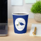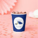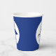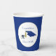 Stylish graduation party paper cups, done in blue, with a white round text area. Graphics of a mortarboard cap and diploma, decorate the circle, with custom blue text ready to personalise. Matching graduation party paper napkins and plates are available.