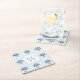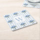 Blue and White Hydrangeas on Stripes Monogram Square Paper Coaster