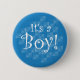 It's a Boy baby announcement buttons featuring white text on a blue checked background.