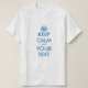 Blue and white keep calm and your text tee shirts. Make your own keep calm t shirt with blue crown. Personalise template. Keep calm and carry on t-shirt maker. Customisable KeepCalm tee shirt with cool royal blue letters. Customise crown and text with your own funny quote or humourous saying. Design your own keepcalmandcarryon shirt easy and quick.