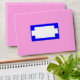 An envelope with a stylish black and white address panel with a drop shadow which gives the illusion of a stick on label. A smaller version of the label is repeated on the back which can be customised with your return address.