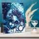 Dark blue and white swirls and bubbles marble digital fluid art pour painting cells effect.