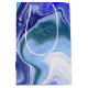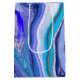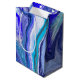 Blue and white marble fluid art birthday or baby shower gift bag.