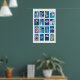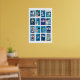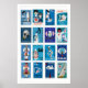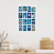Blue and White Matchbox Label Collage, clean modern decor, retro label art print, gallery wall poster, home office style