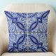 Blue and White Mediterranean Ceramic Tile Pattern Cushion