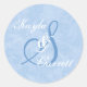 This Blue and White sticker can be used as an envelope seal for your wedding invitations or for your wedding favours. You can change the text colour of the monogram or the names for a different look. Design tip: If you change the initial you might need to recenter it.